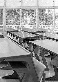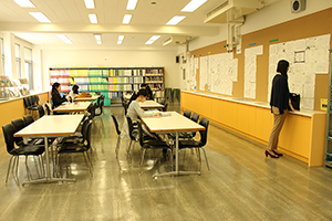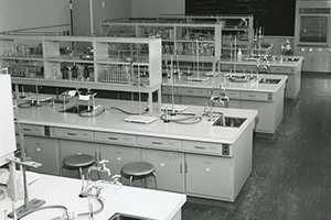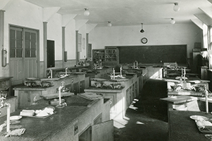 短大では一般の授業は普通教室で行われました。そのほか特定の学科生が利用する特別教室も数多くありました。その学科生でないと知らない場所です。その例に家政学科の実験実習室があります。1967年に完成した南校舎は、東半分に家政学科の実験実習室18室、実験実習関係特別室10室、研究室10室が配され、南校舎は別名家政学科の校舎と呼ばれるほど、充実した施設設備が整えられていました。音楽関係については旧木造別館の1室から始まり幼稚園3階を経て北校舎建設増設で音楽室が3階に、器楽練習室が4階に定まりました。1962年に児童教育学科が新設され、その特別教室として美術関係の教室が北校舎の地階と1階に設けられます。1989年には芸術学科が誕生し、関係の教室、実習室、制作室が整備されました。北校舎廊下と礼拝堂の間にあったギャラリーは、1983年の礼拝堂建設にあわせ設置されたもので、学院内で唯一のギャラリー空間としての役割を果たしました。