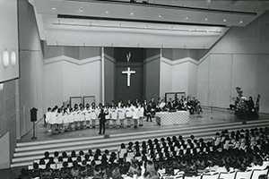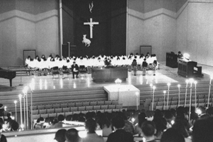 キリスト教信仰にもとづく教育の中心となる礼拝では、近隣教会の牧師やクリスチャンの教職員の方々、学生の皆さんに説教、奨励をしていただきました。初期の頃、学友会の中の宗教部と大学の共催で行われてきた学生修養会は1965年度以降大学主催となり、学びと交流の場としてクリスチャン以外の学生の参加が増えました。夏は中軽井沢寮、冬は天城山荘でというスタイルになり、1980年代後半には「サマーキャンプ・イン・軽井沢」「天城冬の集い」という名称が定着しました。2011年の東日本大震災発生を契機にサマーキャンプは中止され、被災地支援ボランティアが実施されるようになり、代わって9月末にオータム・リトリートが行われました。また宗教活動委員の学生たちの活動として聖歌隊、ハンドベル、ゴスペルなどが行われてきました。1967年に冬期修養会の報告として創刊された記録誌『みずさき』は、1991年より体裁を変えて本学の宗教活動を内外に伝える広報誌となりました。