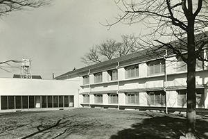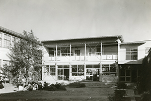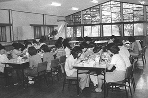 本学の学生寮は歴史的に、金王寮以前の時代、金王寮の時代、猿楽町の新寮の時代の3つに大別されます。渋谷区金王町(現、渋谷区渋谷2丁目)の地に定員69名の金王寮が建設されたのは1951年5月で、それ以前は学生は複数の小規模な寮に分散して生活していました。1952年2月、金王寮はシオン寮と命名されます。1954年には、定員115名のシオン寮第二寮が完成しました。本学の拡大に伴い学生数は増加し、新しい寮を求め、1966年に渋谷区猿楽町へと移転します。ここに6階建、定員248名の新しいシオン寮が誕生しました。部屋は1室4名でしたが1987年からは1室2名となります。本学の寮はキリスト教の精神に基づく教育寮であり、それを維持した寮監の存在と、寮の日常を支えた多くの人の働きがあったことを忘れることはできません。2020年3月をもって閉寮となりましたが、思い出は深く、2018年9月のシオン寮生の会に約400名が、2019年9月のシオン寮ホームカミングデーに約650名の元寮生が集いました。