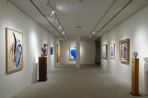 1977年、教育の一環として優れた美術品を学生に触れさせることを目的に、施設整備委員会によって、中庭植込みや図書館入り口に彫刻が設置されました。1983年の礼拝堂建設にあわせて礼拝堂と宗教センターの間にギャラリーが造られ、1985年から継続された女流作家展・企画展により短大の美術品コレクションが充実していきました。1989年の芸術学科創設に際して参考資料として絵画や彫刻作品が加わり、毎年学院の創立記念日を含む数週間、これらの貴重なコレクションを展示する所蔵作品展が開催されてきました。また学科展、児童教育・子ども学科や芸術学科などの学生作品展示、教職員による作品展、図書館の貴重書コレクション展示などが企画され、同窓会員の作品展、青山学院の全設置学校が参加する展覧会の会場にもなっています。学内各所に設置された美術作品とともに豊かな時間と空間をつくり出してきたギャラリーは、教養教育の一端を担う役割を果たしてきたといえます。