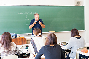 短期語学研修や海外の大学での1年間の修学を希望する学生の増加から、1987年のウェスタン・ミシガン大学から始まり、アメリカの大学3〜4校との姉妹校提携が結ばれ、1993年度には、前期の授業と夏季休暇中のウェスタン・ミシガン大学での授業・視察を組み合わせた総合科目「アメリカの文化と社会」が一般教育科目に設けられました。2000年度開学50周年記念国際交流行事から姉妹校招待が始まり、コーネル・カレッジとカレッジ オブ ノートルダム オブ メリーランド(2011年よりノートルダム オブ メリーランド大学)から毎年交互に1週間〜10日間の日程で教員1名・学生5名を受け入れて授業の出席や様々な企画を通して学生と交流を行い、2006年度には本学からの姉妹校訪問も始まりました。またアジア地域からの留学を援助する目的で設定された国際奨学基金制度のもと、1991年度〜2004年度にタイ、フィリピンから奨学生を専攻科に受け入れ、その中からは大学で日本語教師となった人も出ています。
