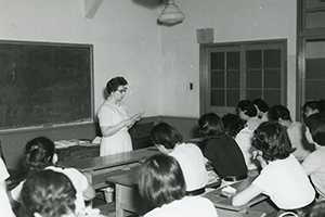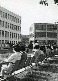 入学定員250名で始まった本学でしたが、1962年、児童教育科増設、文科の国文科と英文科改組、1966年には教養科の新設で、60年代の終わりには入学定員は700名となり、専攻科の学生も含めると2,000名を超える学生が在籍する大きな短大へと発展しました。