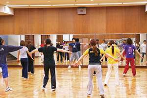 1991年の大学設置基準の改正(大綱化)により、保健体育の扱いは各大学に委ねられることになりました。本学では開学以来、講義と実技を必修とし、大綱化以降も、保健体育(健康科学)が教養教育に持つ意味を大切にして必修を変えず教育課程を編成いたしました。2007年には本学の健康教育が評価され、文科省の「特色ある大学教育支援プログラム」に選定されています。このとき「本学は開学以来、体力・気力に溢れた女性を育成するため、教養教育の一環として、正課の体育授業および正課外の体育活動の充実により女性の生涯スポーツの素地を培ってきた」と述べています(申請書類より)。学生時代の心身について理解するだけでなく、健康を長期の視点からとらえる講義が行われ、実技も生涯にわたって楽しめる種目が選ばれました。入学定員の学生を迎え入れた最後の年度の2018年度に開講された実技種目は次の通りでした。バドミントン、フットサル、ゴルフ、卓球、バスケットボール、ラケットスポーツ、バレーボ-ル、エアロビックダンス、ダンスエアロ、世界の踊り・日本の舞踊、日本の民族舞踊、フラ、ピラティス、コンディショニング、ボウリング、スキー。