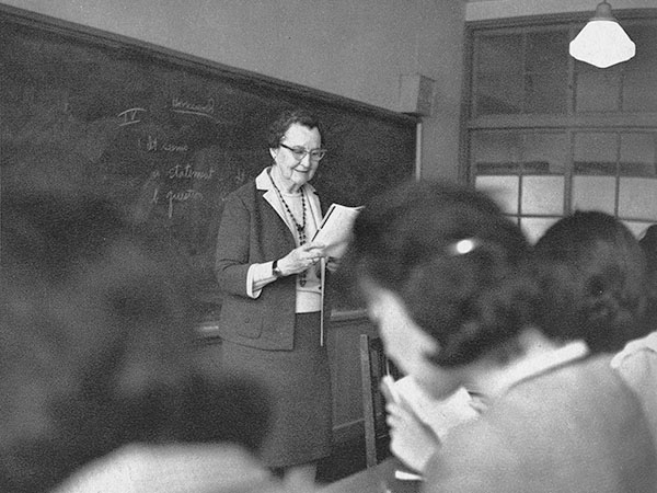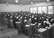 短大発足の1950年時は、文科国文専攻、1962年から国文科、1969年より国文学科と称しました。入学定員は1950年の50名からはじまり、1952年に80名、1955年に100名、1968年に150名、1976年に200名へと成長しました(2006年からは子ども学科3年制開始にともない10名減の190名)。2012年に現代教養学科への改組にともない、2013年度限りで国文学科は閉じましたが、この間の卒業生は12,564名に及びます。青山学院大学に日本文学科が誕生したのは1966年であり、それまでは青山学院で国語・国文学(日本語・日本文学)を学べるのは本学科のみでした。その系譜は1943年の戦中に女子専門部に開設された文科第一類(国語科)にさかのぼります。戦局により英文専攻を廃止し代わって誕生した学科でありましたが、戦後の女子専門学校に引き継がれ、短大でも発足時より設置され、豊かな教授・講師陣を擁する伝統ある学科として存続しました。