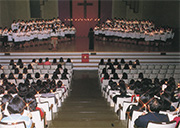 本学では各教師は言うまでもなく事務職員の全員が両輪となって個々の学生の大学生活全般の具体的な必要を支え、丁寧に見守る体制を整えていたのです。学生が自分の人生を切り開いていくために自己の確立に向かうよう援助するためでした。