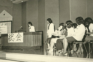 学生運動が1960年代後半~70年代初めに盛んになり、学院大学では60年代末活動は激化し、短大と大学の間に1969年に塀が設けられたりしました。女子の大学進学率(短大を含む)は、1970年の6人に1人から76年の3人に1人へと急増した時期でもありました。