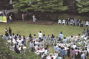 1951年、第一回目の体育大会であるプレイデイが開催され、中断期間があったものの2018年まで恒例行事として継続されました。プレイデイのネームは勝負を目的とするものではなく、お互いの和をはかり楽しく過ごすことに重点を置いて付けられたものです。1974年から始まった学生部主催のグリーンパーティは、その名の通り新緑の美しい中庭で開催され、新しく着任された先生の紹介やクラブ活動の発表などが行われました。1977年以降青山学院のキリスト教教育の一つとしてアドヴェント(クリスマスまでの4週間)の前の金曜日に行われてきたクリスマス・ツリー点火祭は学院全体が一つになる行事です。12月に開催された児童教育・子ども学科の発表会、1983年に英文学科で始まり現代教養学科国際専攻に引き継がれたスピーチコンテストなど教育成果を披露する学科行事も行われました。また児童教育・子ども学科で行われてきた卒業研究発表会が、2013年度から現代教養学科でも開催され、全学行事となりました。