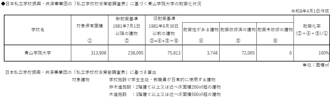 ◆耐震改修促進法に基づく青山学院関連施設の耐震化の状況