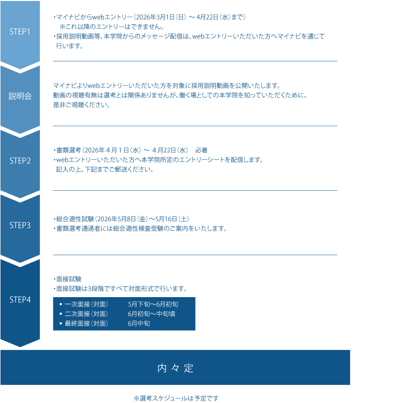 各ステップの詳細については決定次第、webエントリーいただいた方へ情報を配信しますので、そちらをご参照ください。